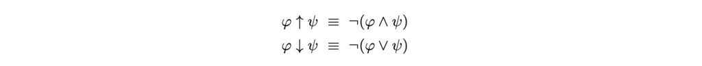 \varphi\wedge\psi\ &\equiv \ (\varphi\uparrow\psi)\uparrow(\varphi\uparrow\psi)